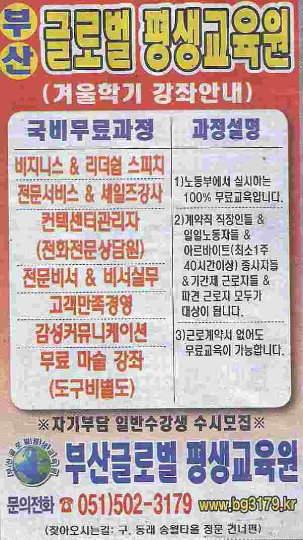 ºÎ»ê±Û·Î¹úÆò»ý±³À°¿ø ±¤°í¾È³»ÀÔ´Ï´Ù.